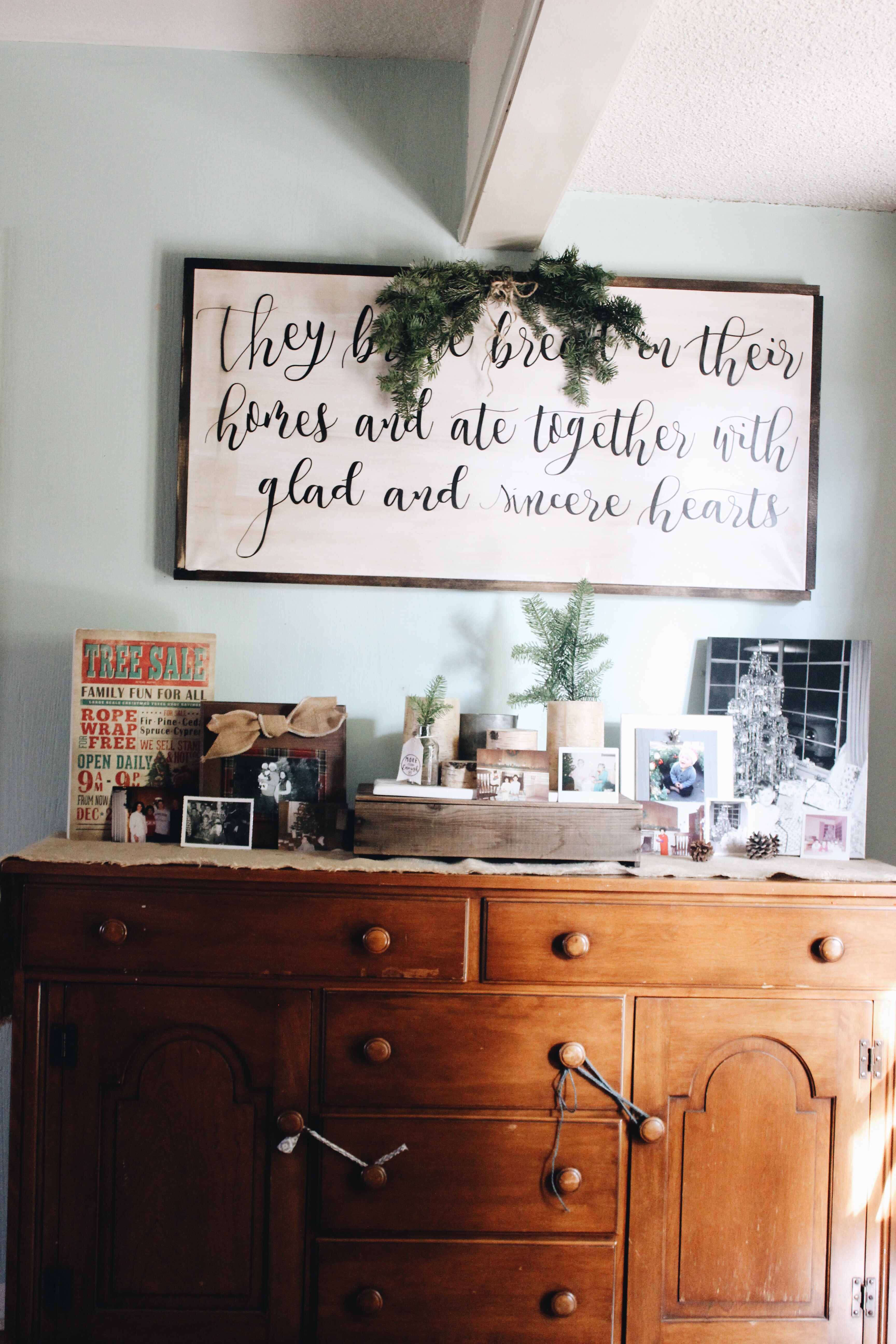 Side note: we took this small picture of Charles’ dad in front of the Christmas tree in our house from when he was little and blew it up and put it on canvas at Costco. It came out so good!! Especially since it was a small picture to begin with. Super impressed. It has been so fun to display this photo of our home from Christmas’s long ago to feel connected to the life that was before us in our home.